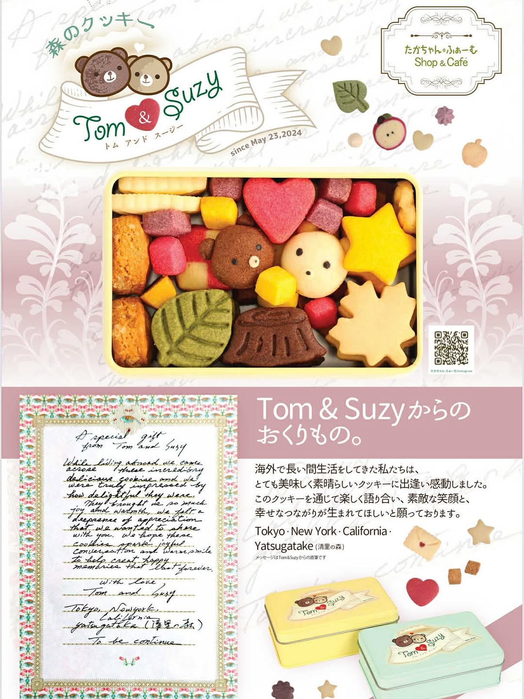 たかちゃん・ふぁーむ Shop & Cafe 🎊 森のクッキー缶「Tom & Suzy からのおくりもの」 本日、地元の八千穂高原・道の駅から新発売です。 ㊗️只今、八千穂高原・道の駅は1周年感謝祭の真っ最中なんです。 こんなタイミングに...